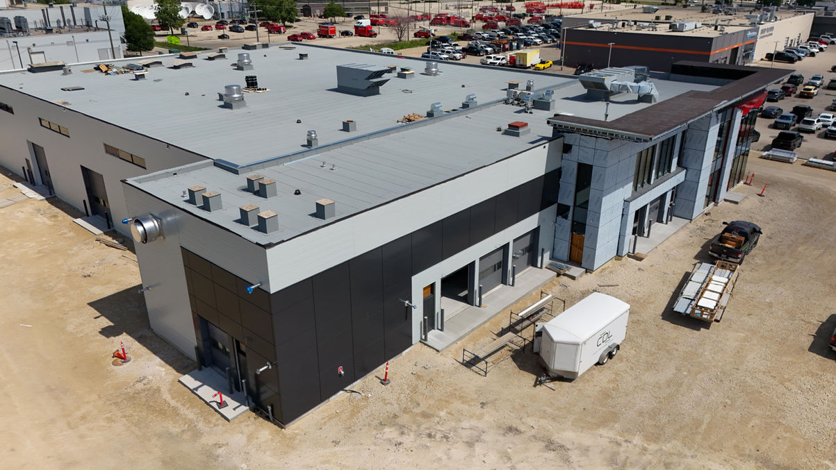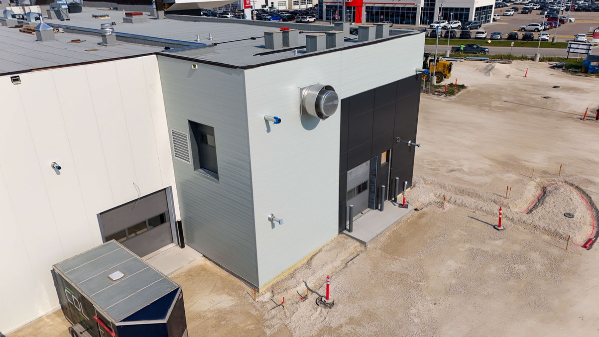 The interior of the building in the vehicle repair & detail area's feature steel liner panel as well as PVC.